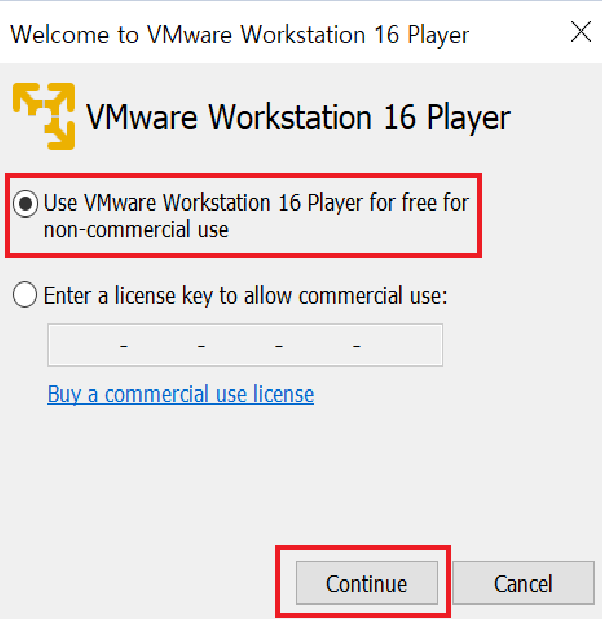 ☞ " Use VMware Workstation 16 Player For free for non-cimmercial use " check